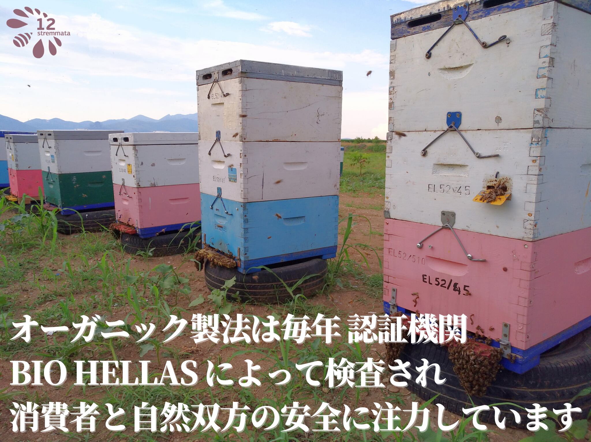 毎年はちみつの元となる植物は有機認証機関(BIO HELLAS)によって認証され、常に安心、高品質のひと瓶を提供できるよう、情熱を注いでいます。