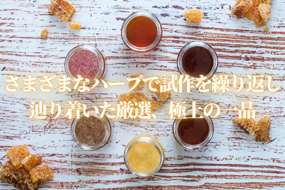 ギリシャのパンゲオン山とファラクロ山に囲まれたドラマという地で、数多くのハーブのはちみつを試作し辿り着いた至福の一品。