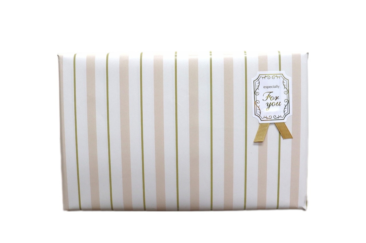 商品のサイズに合った大きさのギフト箱にお入れし、ラッピングで包装致します。